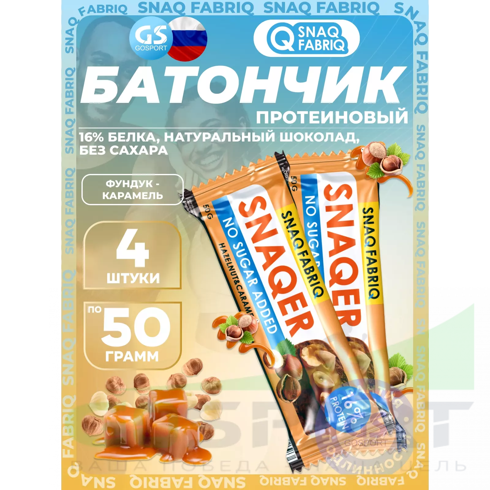 SNAQ FABRIQ Snaqer 4 x 50 г, Фундук-карамель — Полезный перекус и поддержка мышц