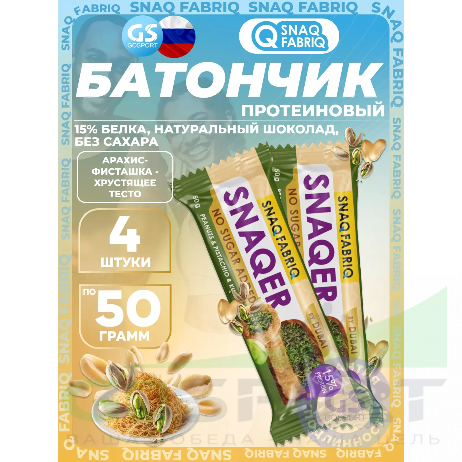 SNAQ FABRIQ Snaqer 4 x 50 г, Арахис-фисташка-хрустящее тесто — Полезный перекус и поддержка мышц