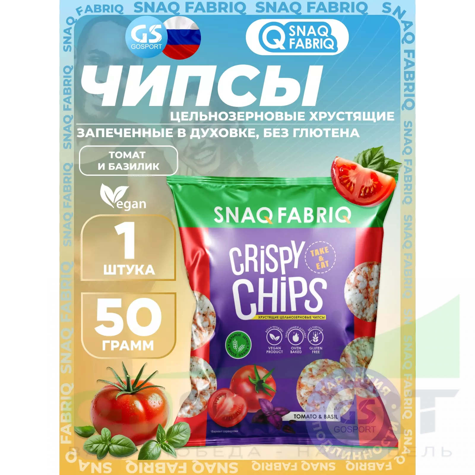 SNAQ FABRIQ Crispy Chips хрустящие цельнозерновые чипсы 50 г, Томат и базилик — Запеченные в духовке, без глютена