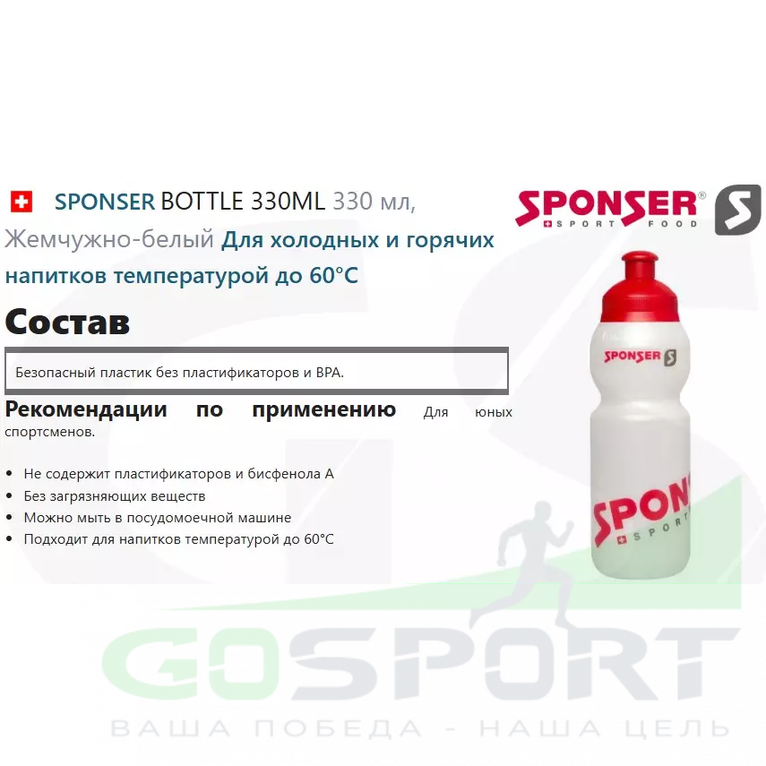 SPONSER BOTTLE 330ML 330 мл, Жемчужно-белый — Для холодных и горячих напитков температурой до 60°C