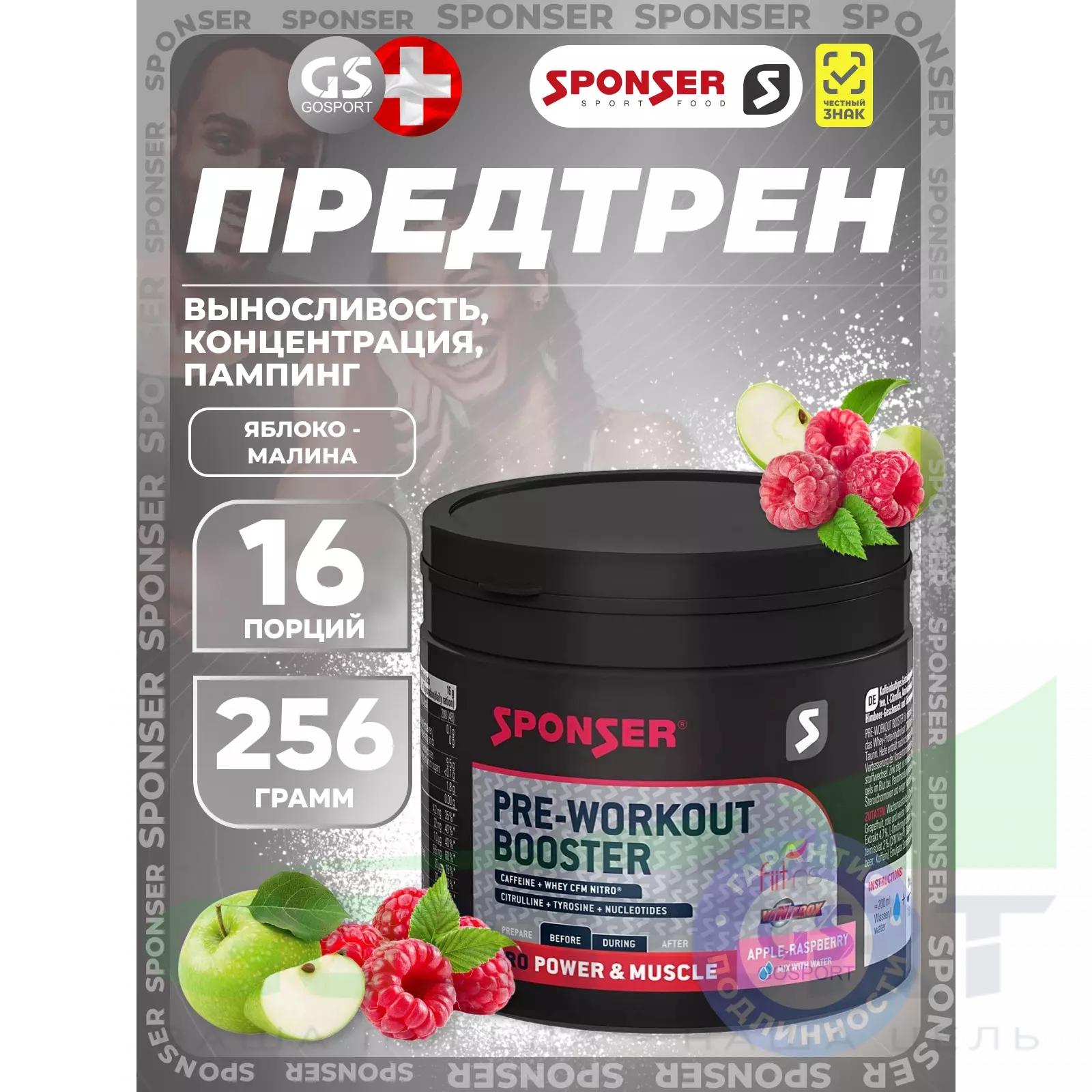 PRE WORKOUT BOOSTER 256 г, Яблочно-малиновый