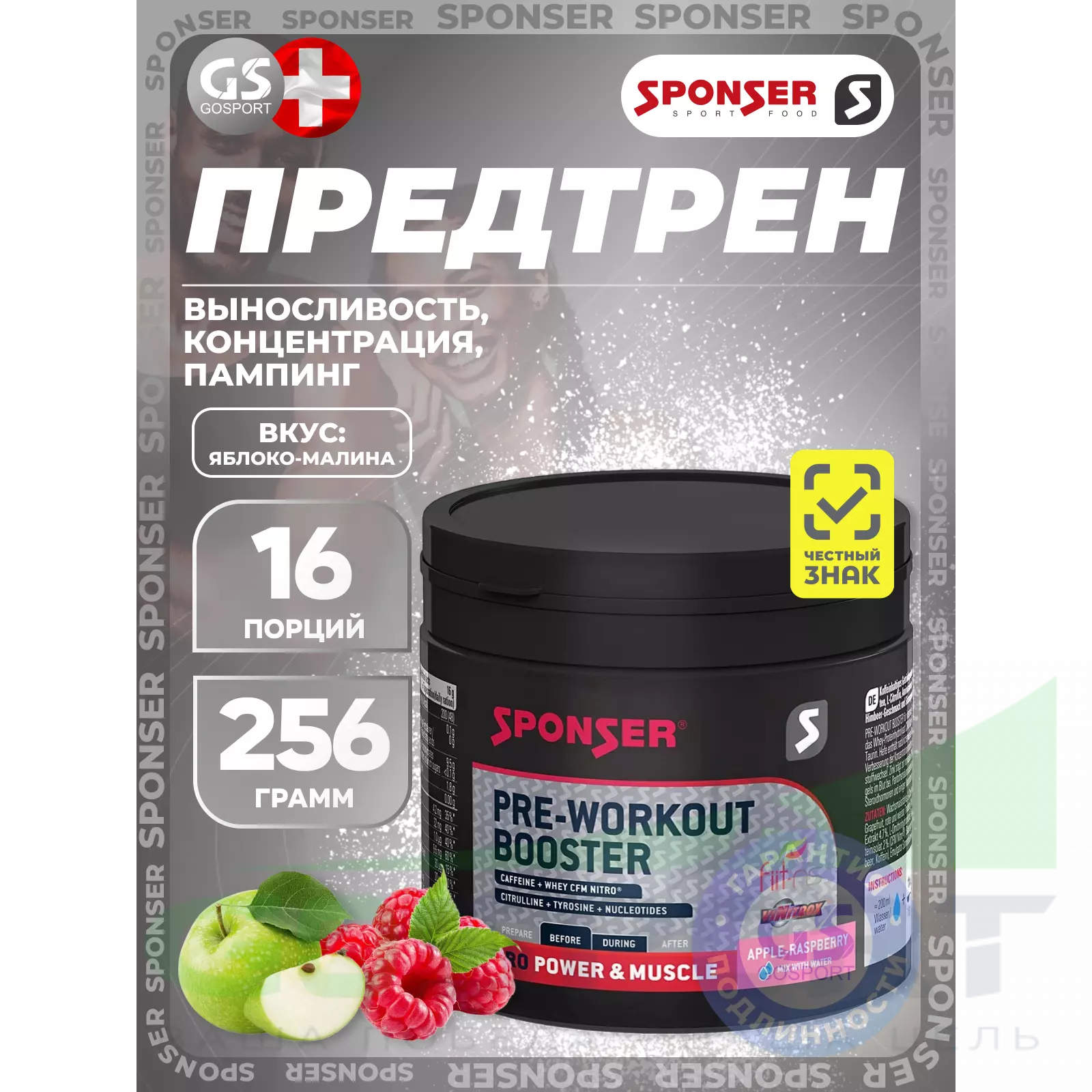 PRE WORKOUT BOOSTER 256 г, Яблочно-малиновый