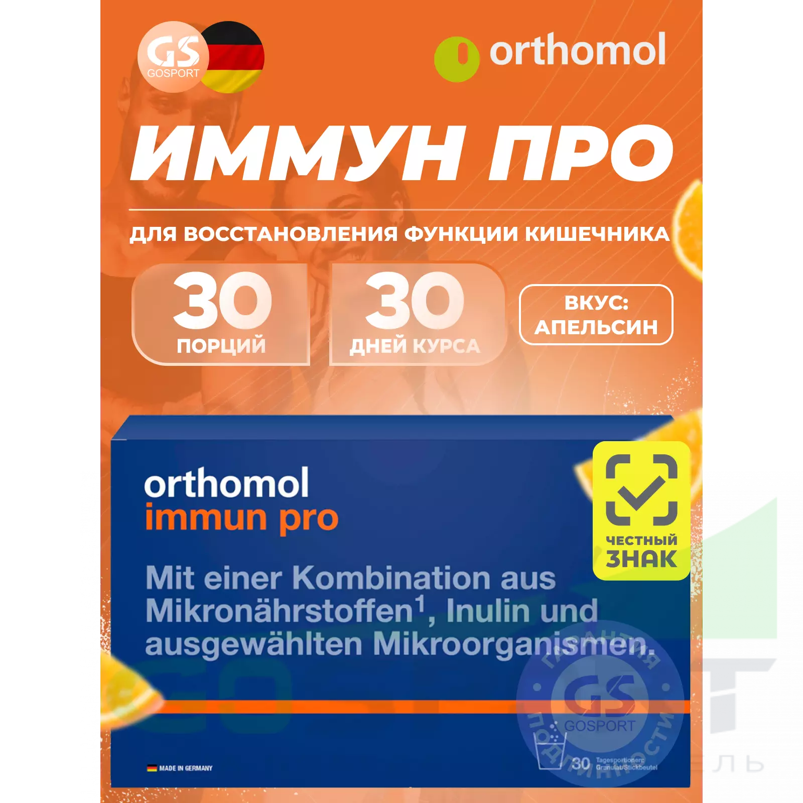 Orthomol ImmunPro (порош. 30 дн) – иммунноукрепляющий препарат, направленный на нормализацию микрофлоры кишечника. Микроэлементы, входящие в его состав, противостоят развитию и размножению патогенных микроорганизмов, предотвращает вероятность снижения иммунитета.