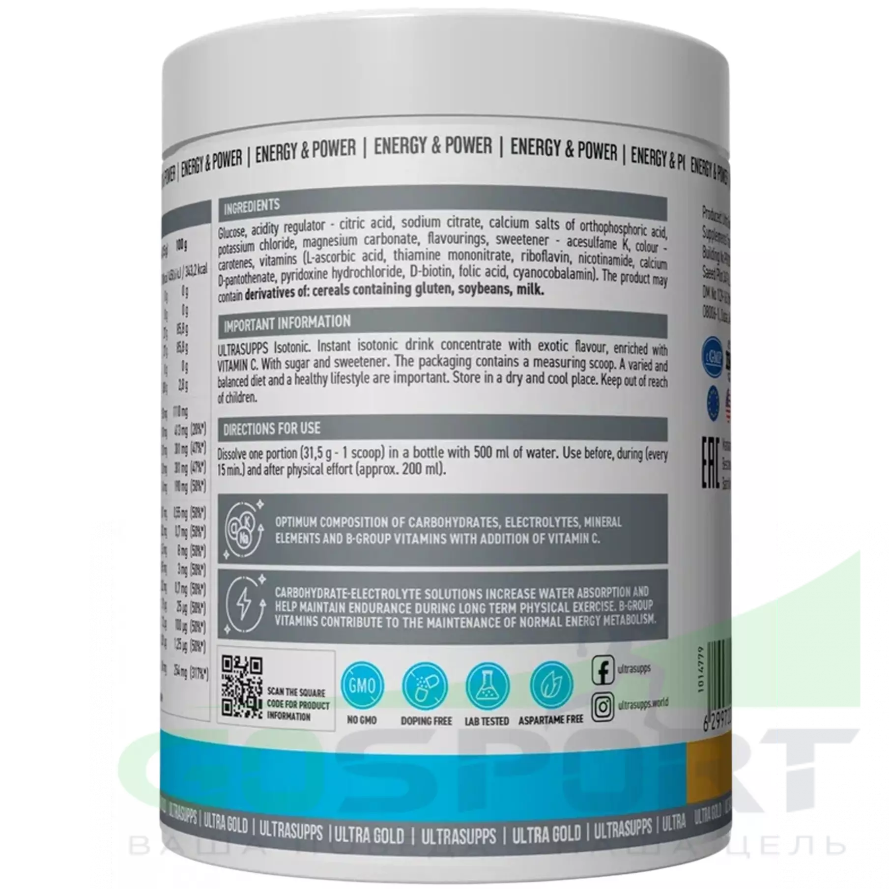 Серия спортивных добавок Ultra Gold выпускается международным брендом Ultrasupps (ОАЭ) специально для отличных продуктивных тренировок и быстрого восстановления. Продукты подходят как профессиональным спортсменам, так и всем, кто занимается фитнесом. Ultrasupps использует в производстве только лучшее сырье премиального качества от известных производителей. Все компоненты продуктов тщательно протестированы.