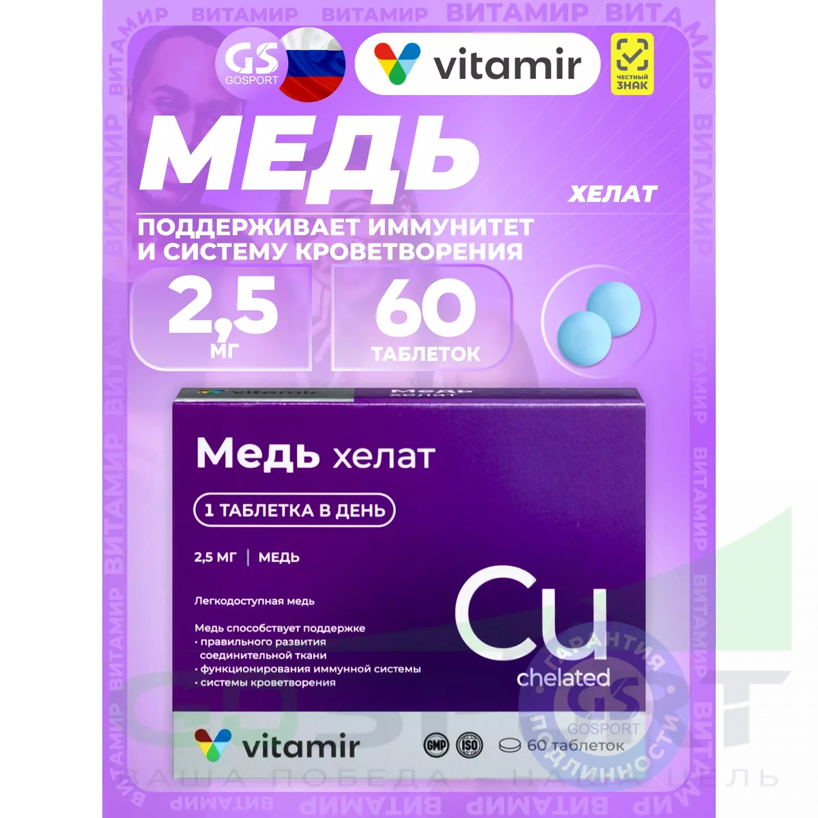 Описание ВИТАМИР Медь хелат 2,5 мг