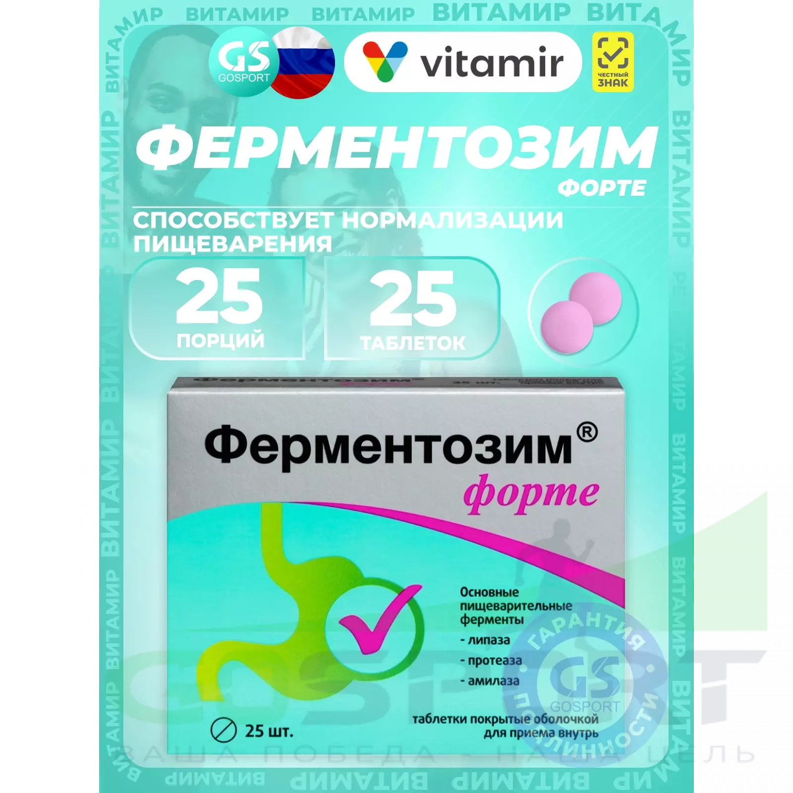 Ферментозим Форте содержит панкреатин и биотин, которые способствуют нормализации пищеварения. Панкреатин компенсирует недостаток ферментов, необходимых для комфортного пищеварения, а биотин дополнительно помогает расщеплению и обмену глюкозы. Входящие в состав панкреатические ферменты облегчают расщепление углеводов, жиров и белков до более мелких фрагментов, которые способны всасываться в желудочно-кишечном тракте.