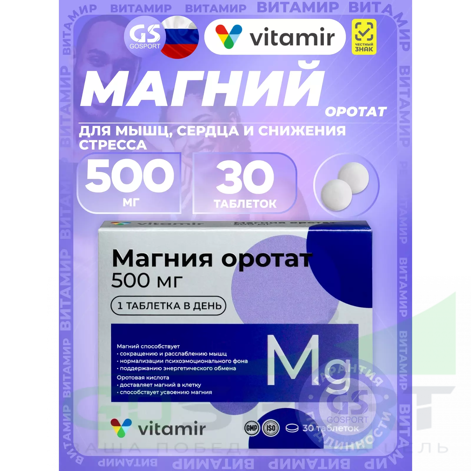 Магний является одним из важнейших компонентов для организма. Он относится к макроэлементам, занимая по количеству в организме четвертое место после натрия, калия и кальция. «Магния оротат 500 мг ВИТАМИР» содержит магний, связанный с оротовой кислотой, которая способствует поступлению этого элемента в клетки организма.