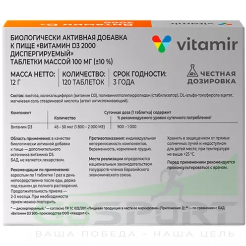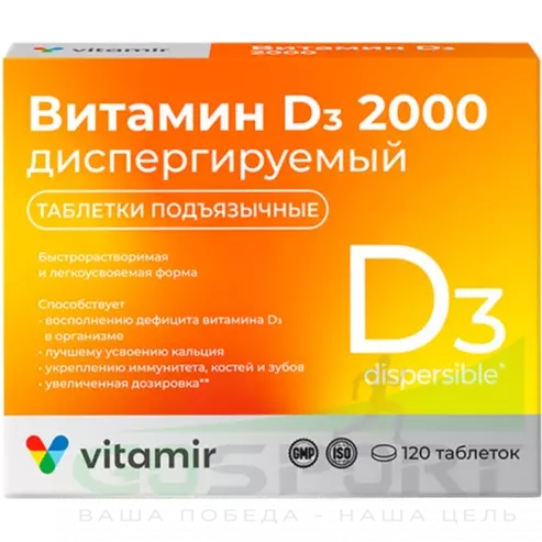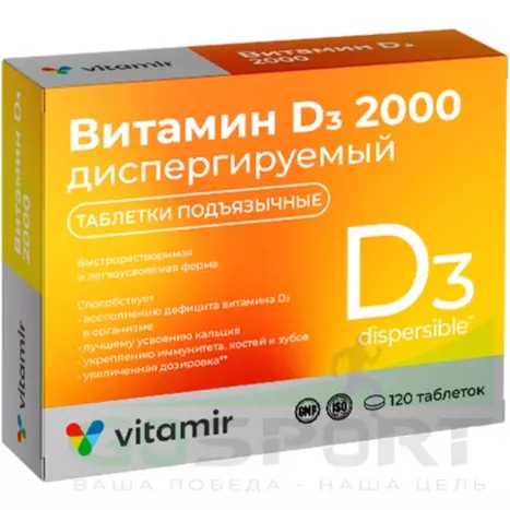 «Витамин D3 2000 диспергируемый» — дополнительный источник витамина D3 в форме подъязычных таблеток, которые быстро растворяются и легко усваиваются организмом.