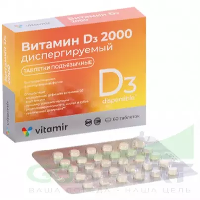 «Витамин D3 2000 диспергируемый» — дополнительный источник витамина D3 в форме подъязычных таблеток, которые быстро растворяются и легко усваиваются организмом.