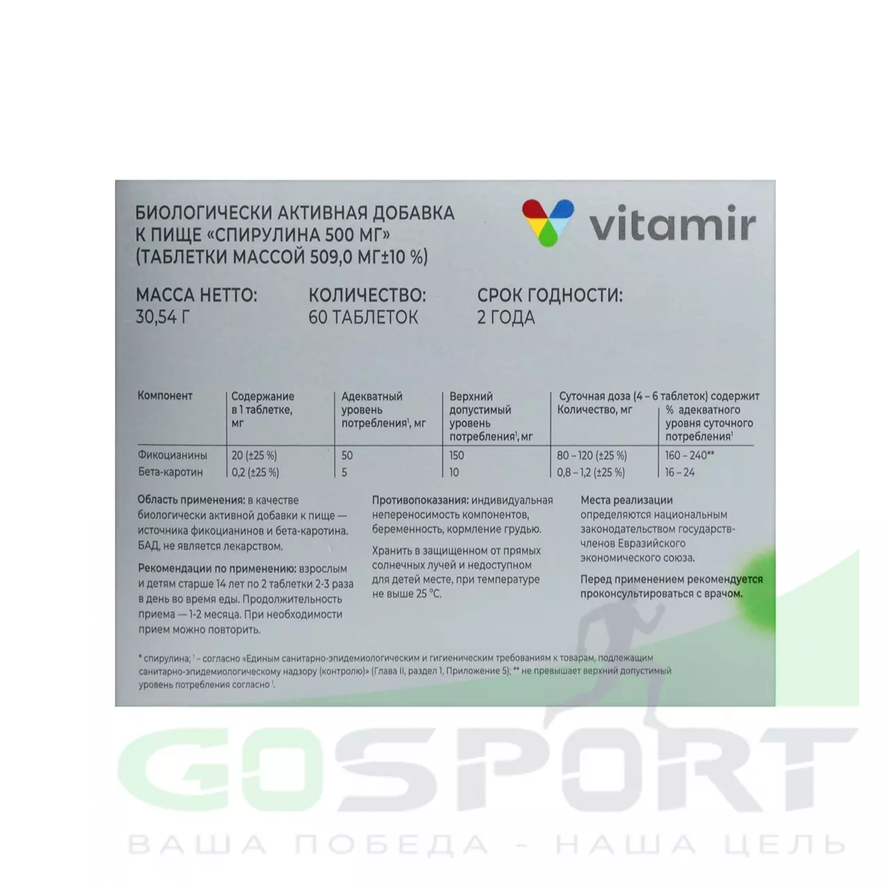 Описание ВИТАМИР Спирулина 500 мг