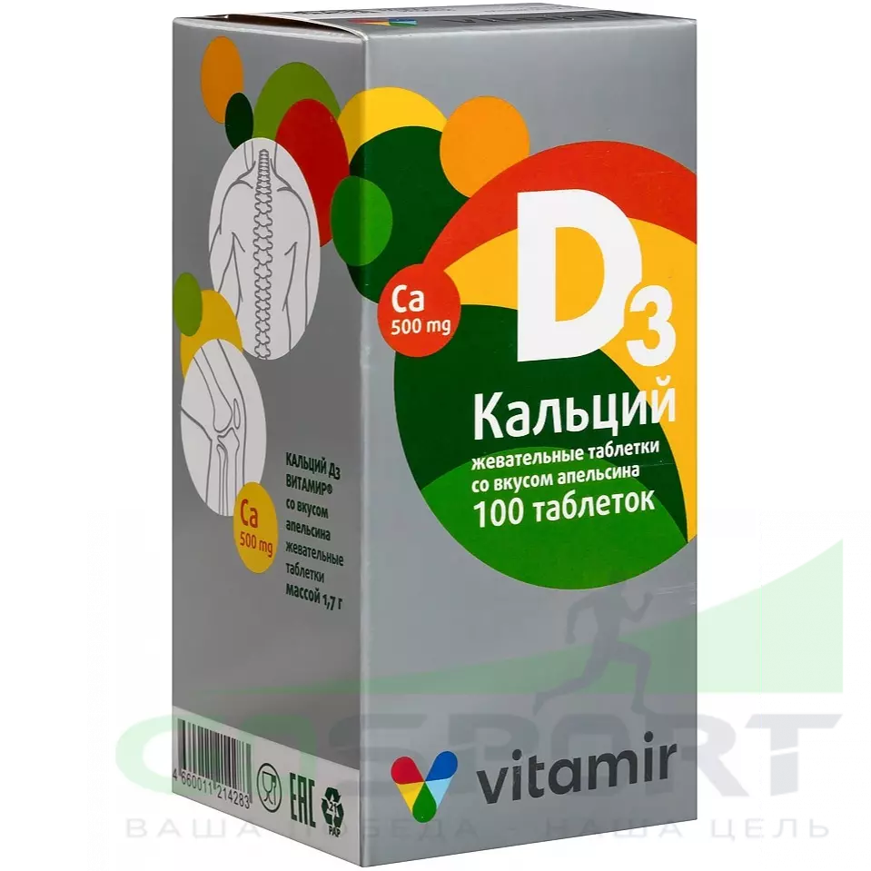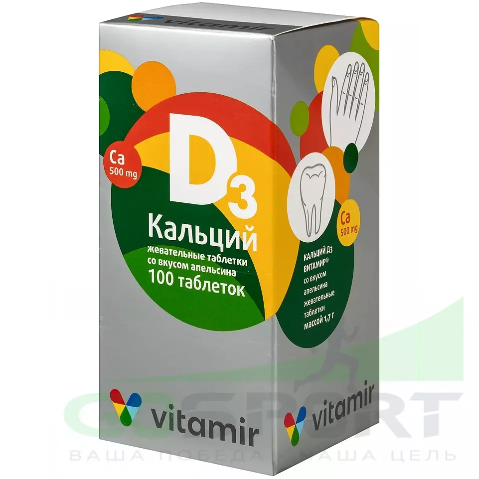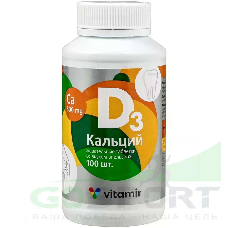 ВИТАМИР Кальций 500 мг + D3 100 жевательных таблеток, Апельсин — Укрепление костей и зубов, здоровье волос и ногтей