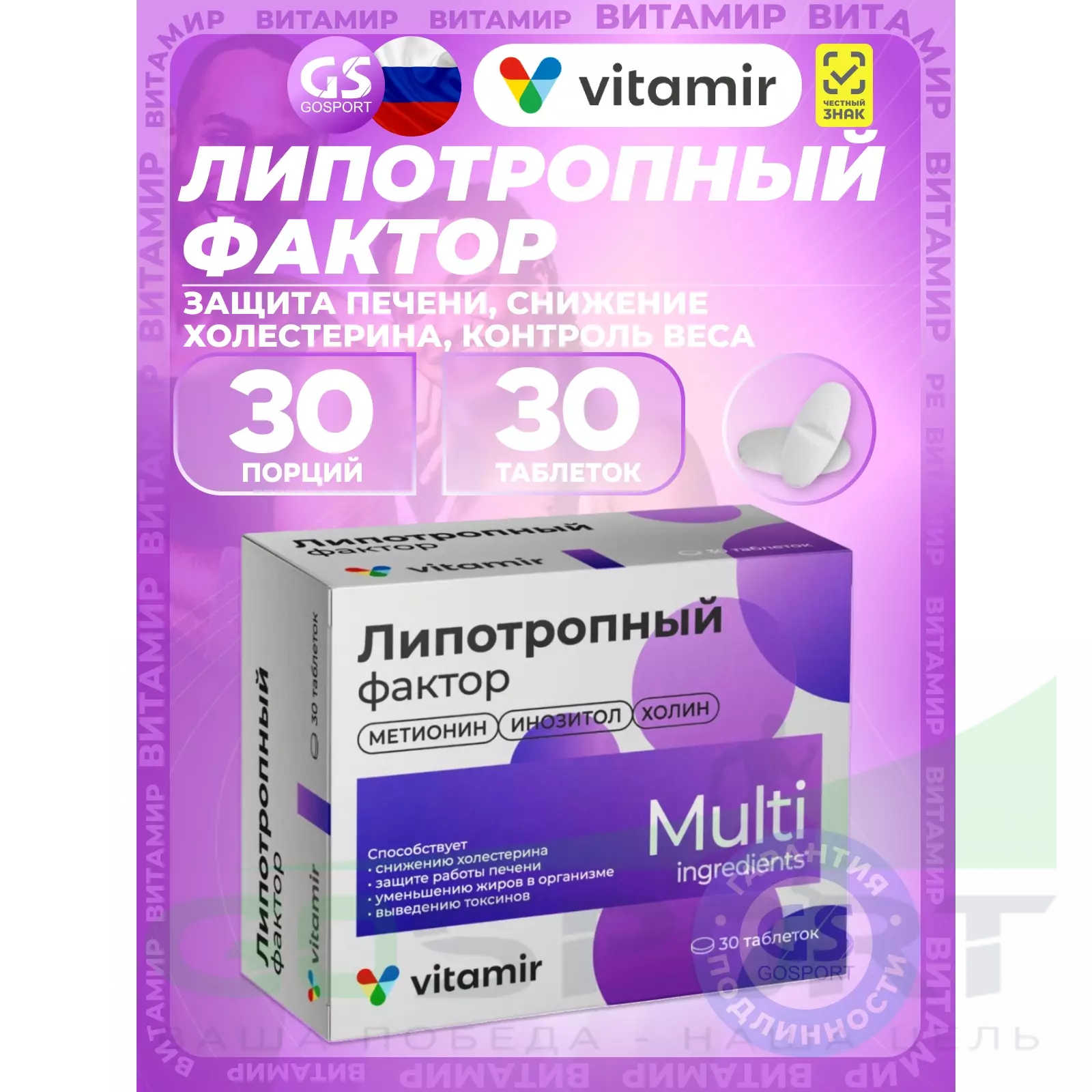 ВИТАМИР Липотропный фактор 30 таблеток — Защита печени, снижение холестерина, контроль веса