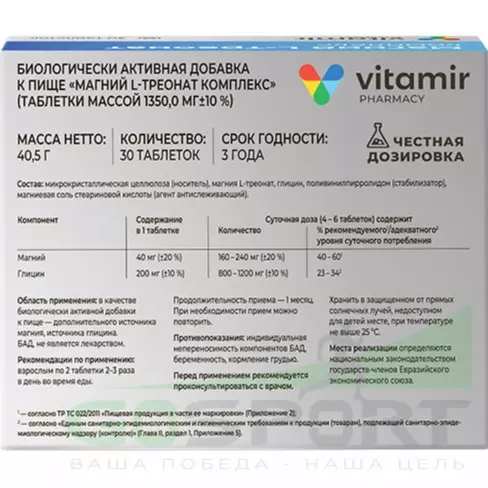 Магний ВИТАМИР Магний L-треонат комплекс 30 таблеток Магний ВИТАМИР Магний L-треонат комплекс 30 таблеток Магний ВИТАМИР Магний L-треонат комплекс 30 таблеток