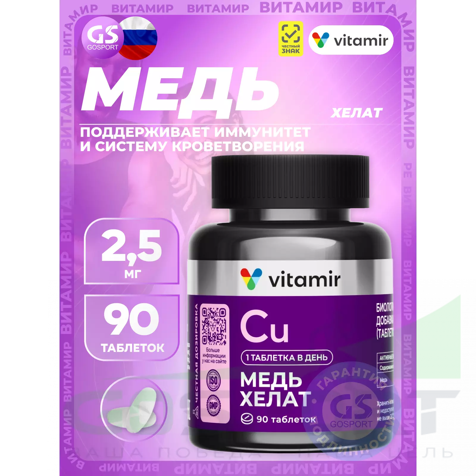 Состав ВИТАМИР Медь хелат 2,5 мг