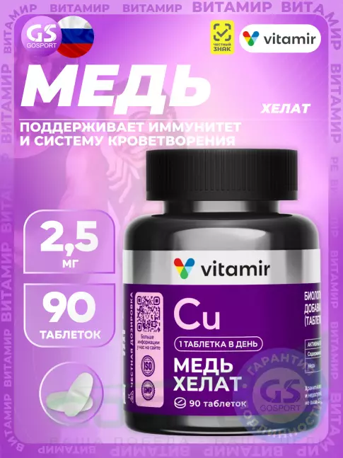 Медь хелат 2,5 мг 90 таблеток