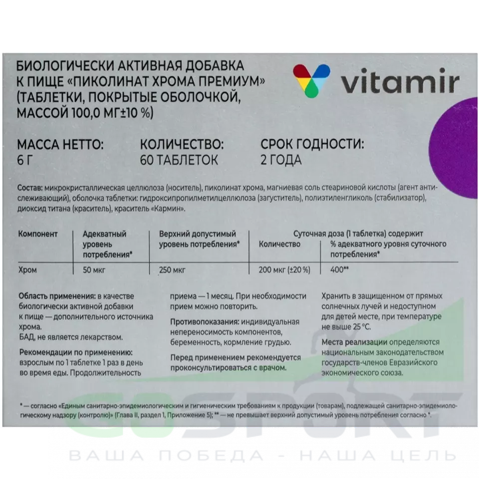 Описание ВИТАМИР Пиколинат хрома 200 мкг