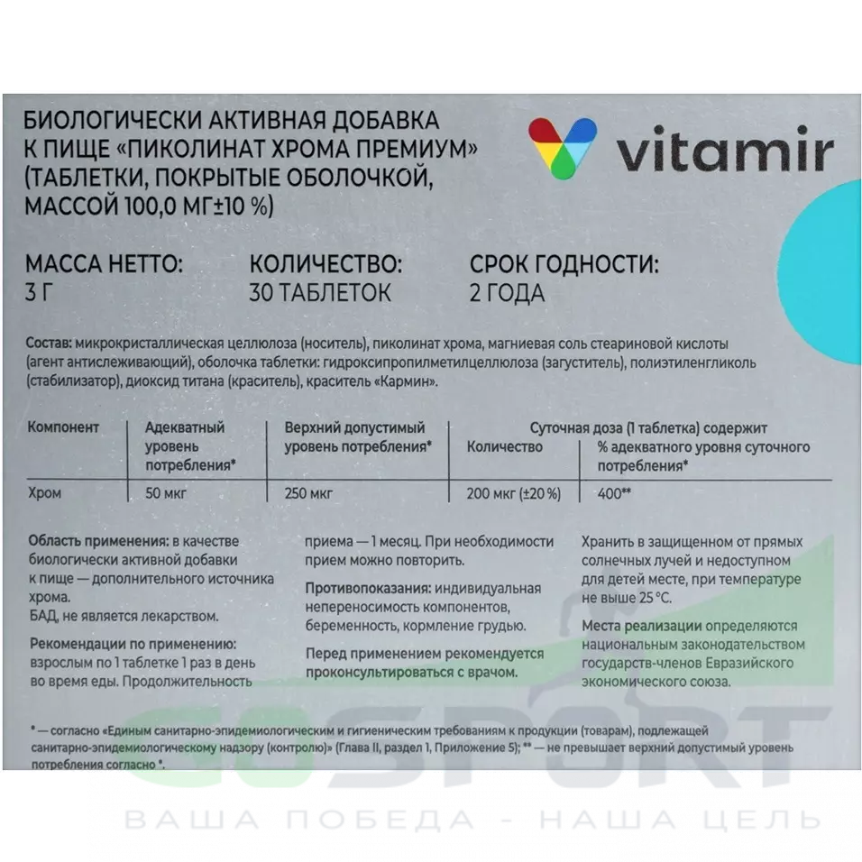 Описание ВИТАМИР Пиколинат хрома 200 мкг