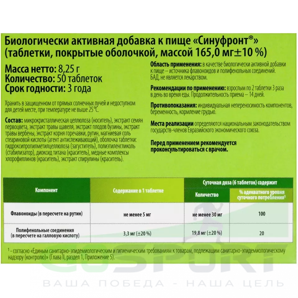 Синуфронт 50 таблеток