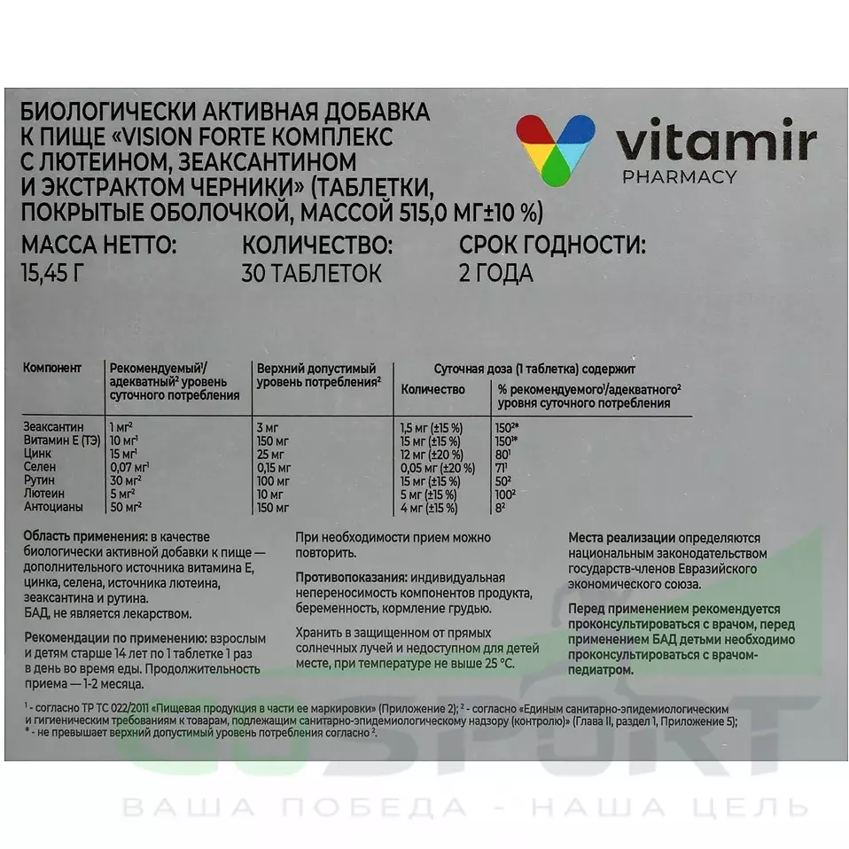 Действующие вещества экстракта активируют процесс антиоксидантной защиты клеток, тем самым препятствуя губительному воздействию свободных радикалов на зрительный аппарат.