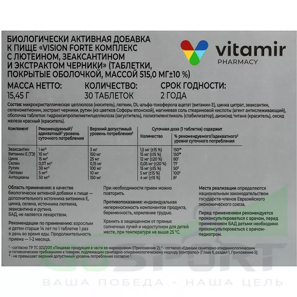 Описание ВИТАМИР Vision Forte