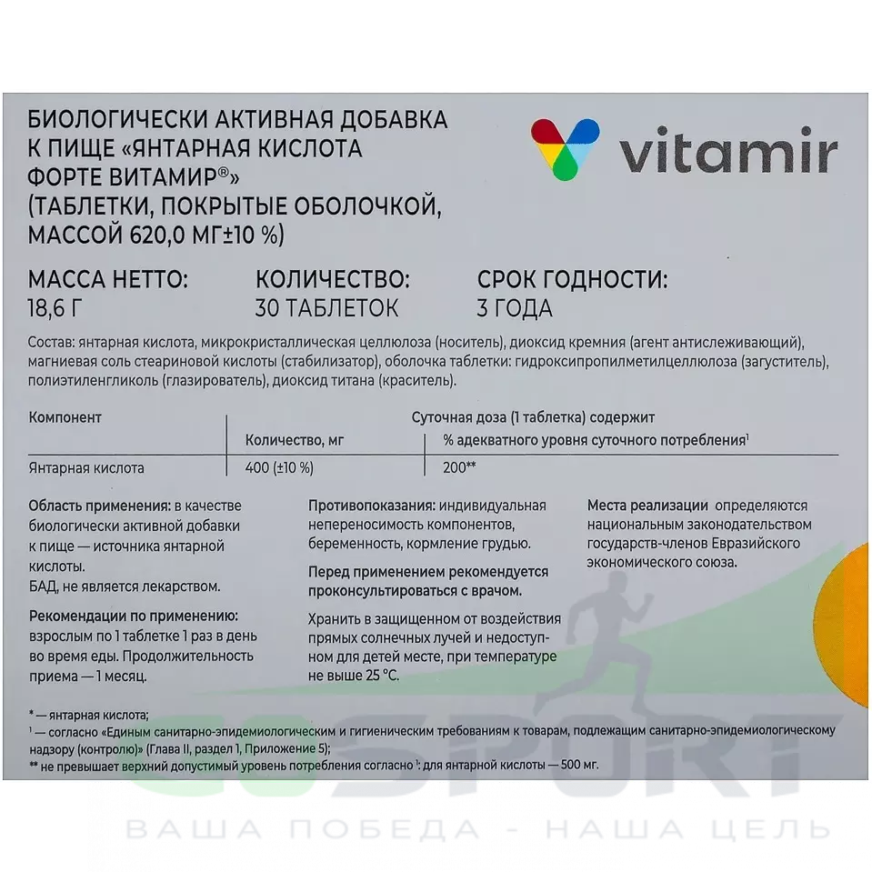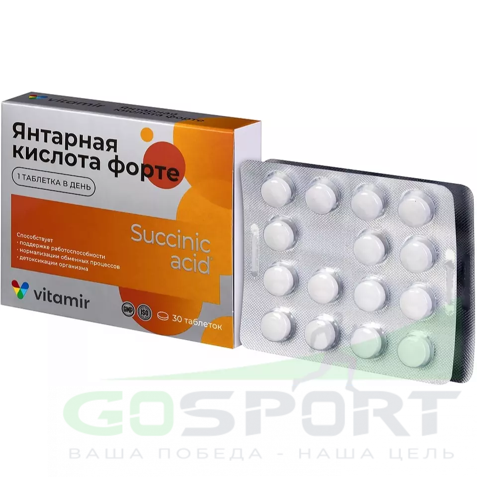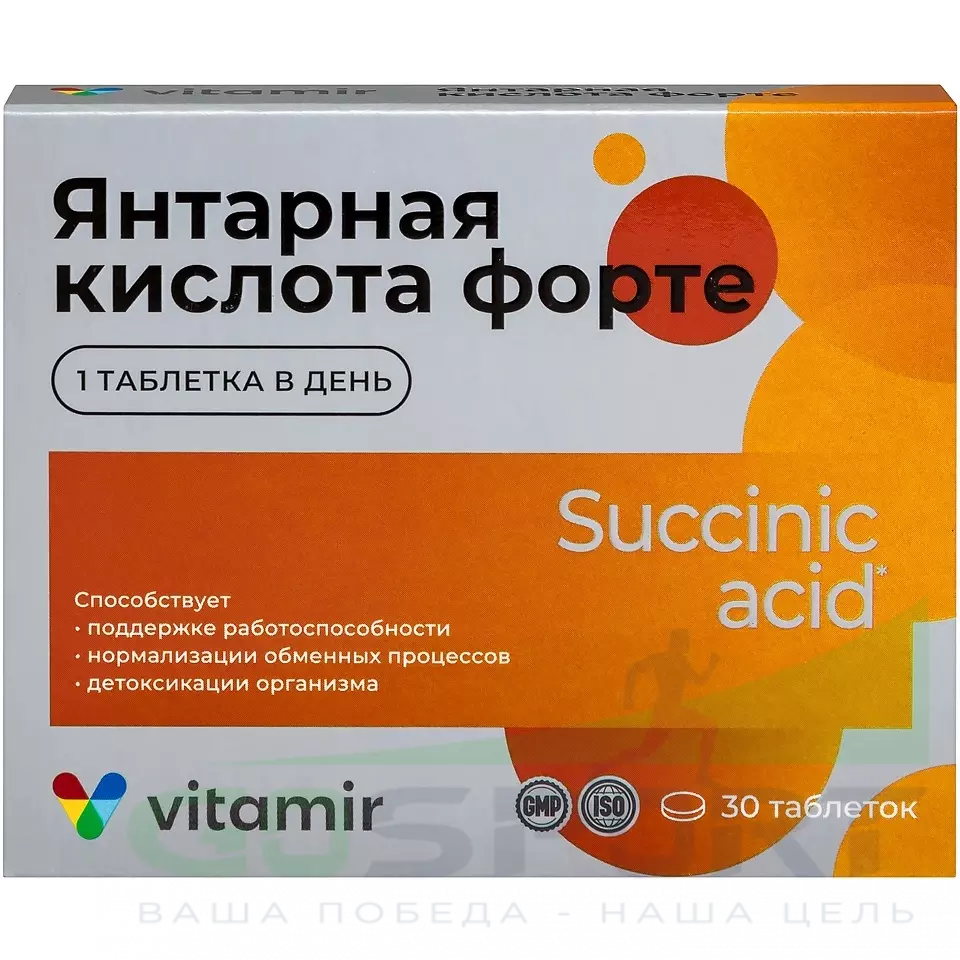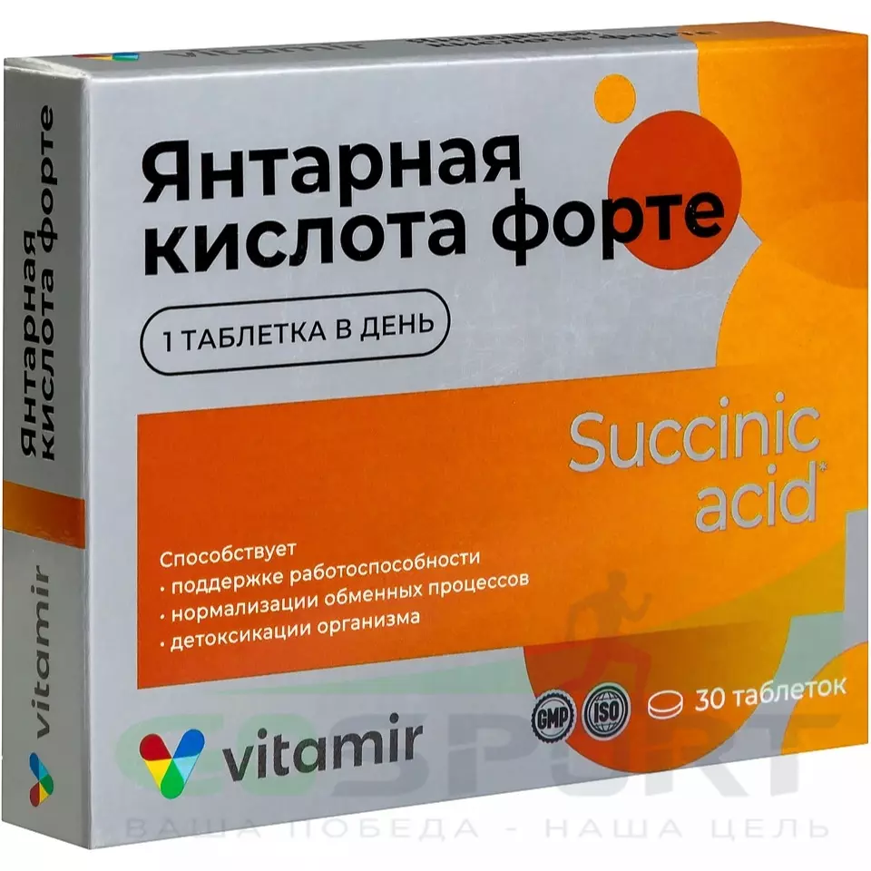 ВИТАМИР Янтарная кислота форте 400 мг 30 таблеток — Повышение энергии и метаболизма, детоксикация