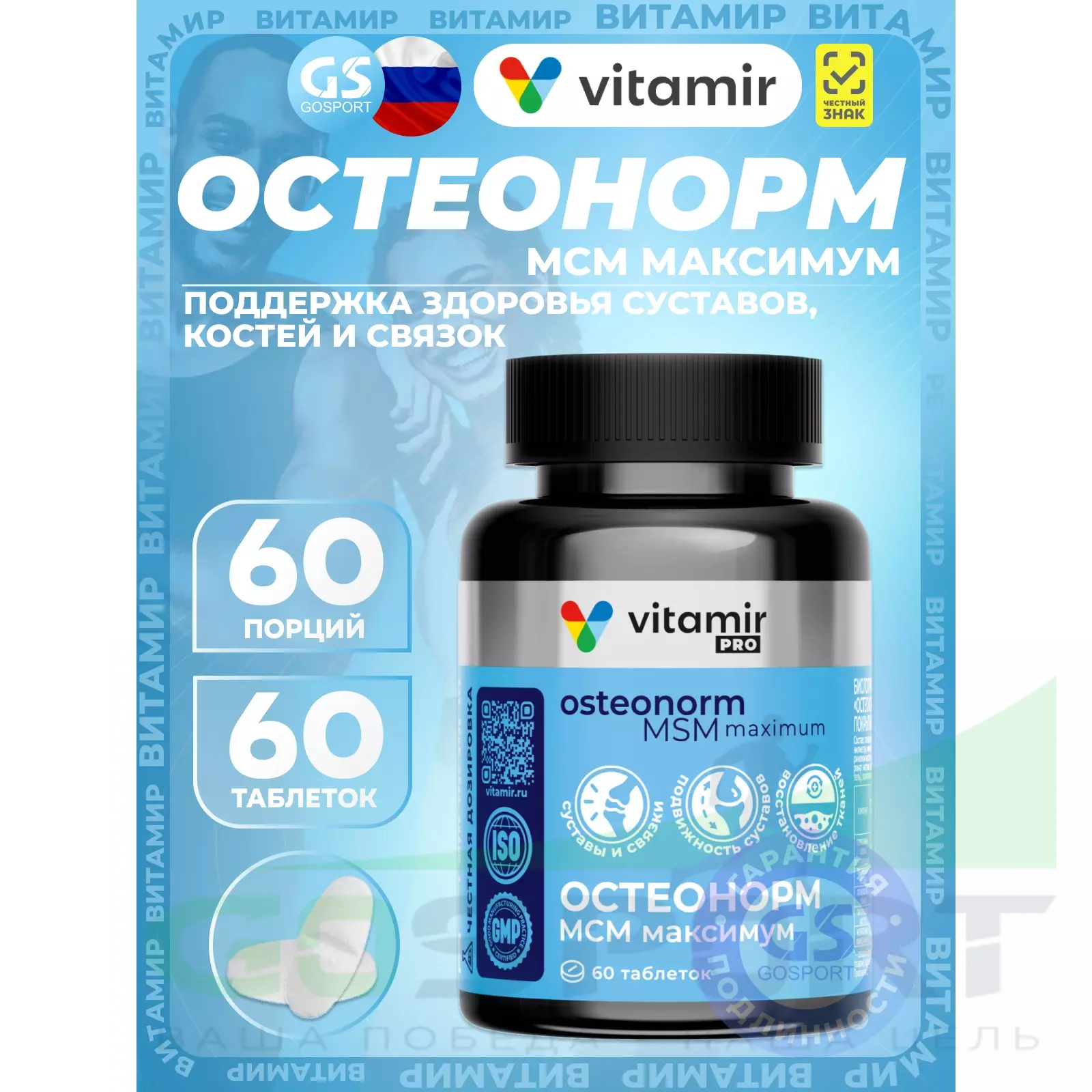VITAMIR PRO Остеонорм МСМ Максимум 60 таблеток — Поддержка здоровья суставов, костей и связок