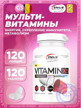 | Витамин B12 | 12.5 μg (500%*) | 2.5 μg (100%*) |
